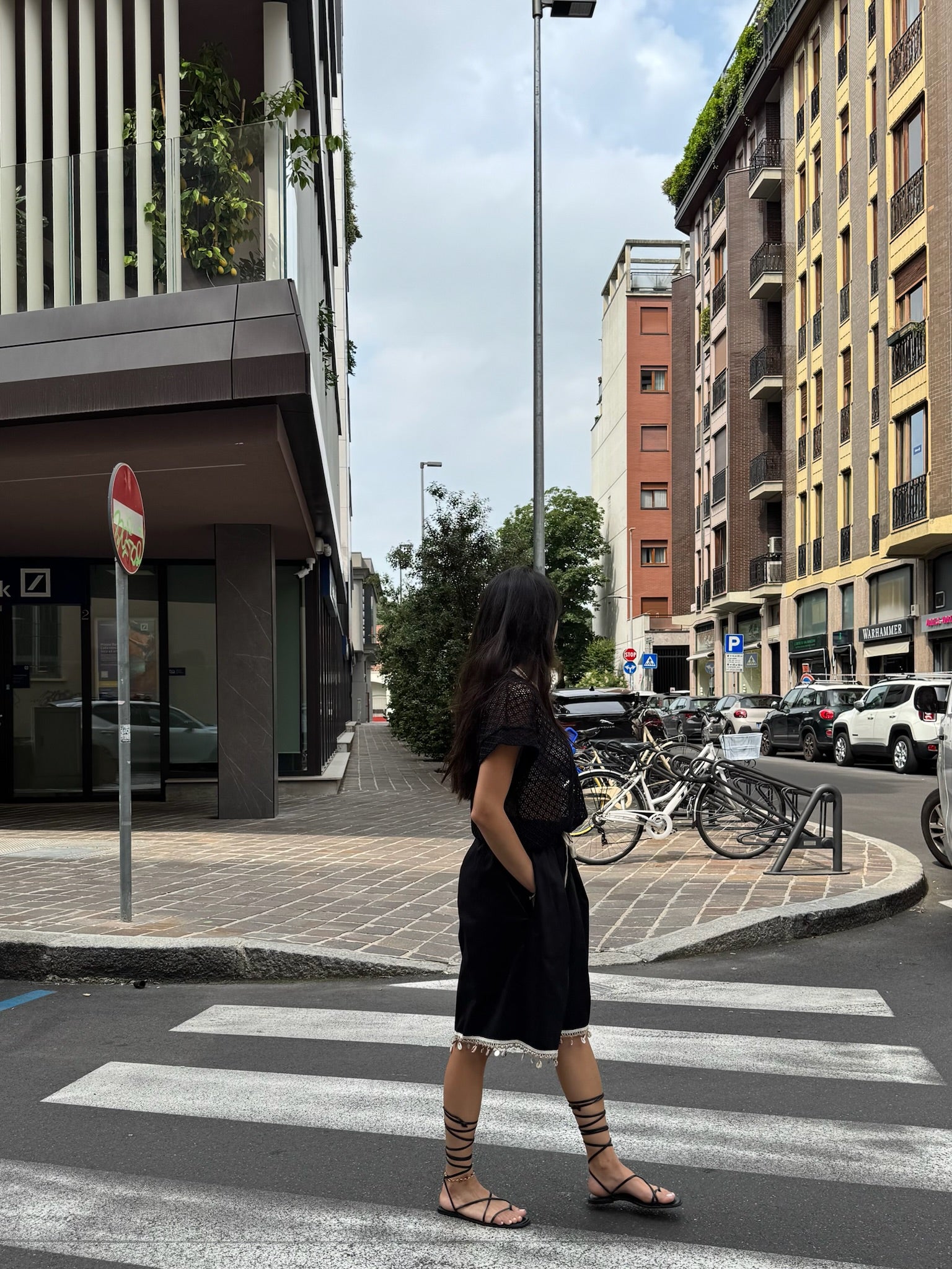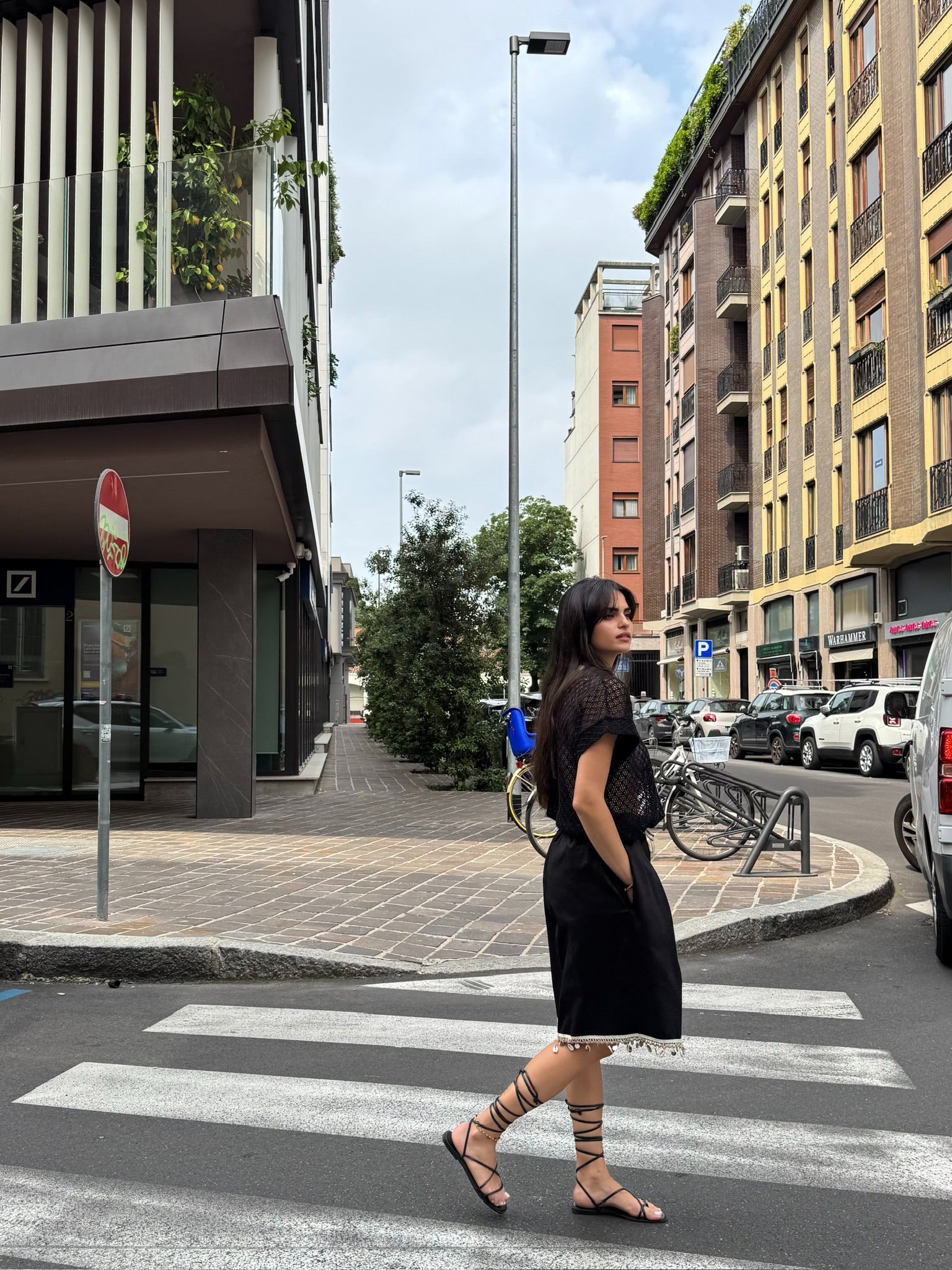 Maxi bermuda in cotone con ricamo di conchiglie sul fondo. Tasche laterali.