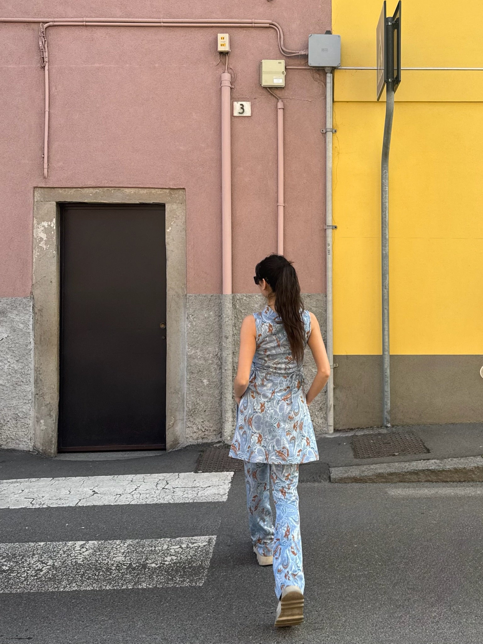 La modella è alta 162 cm e porta una taglia 38, in foto indossa taglia 40.