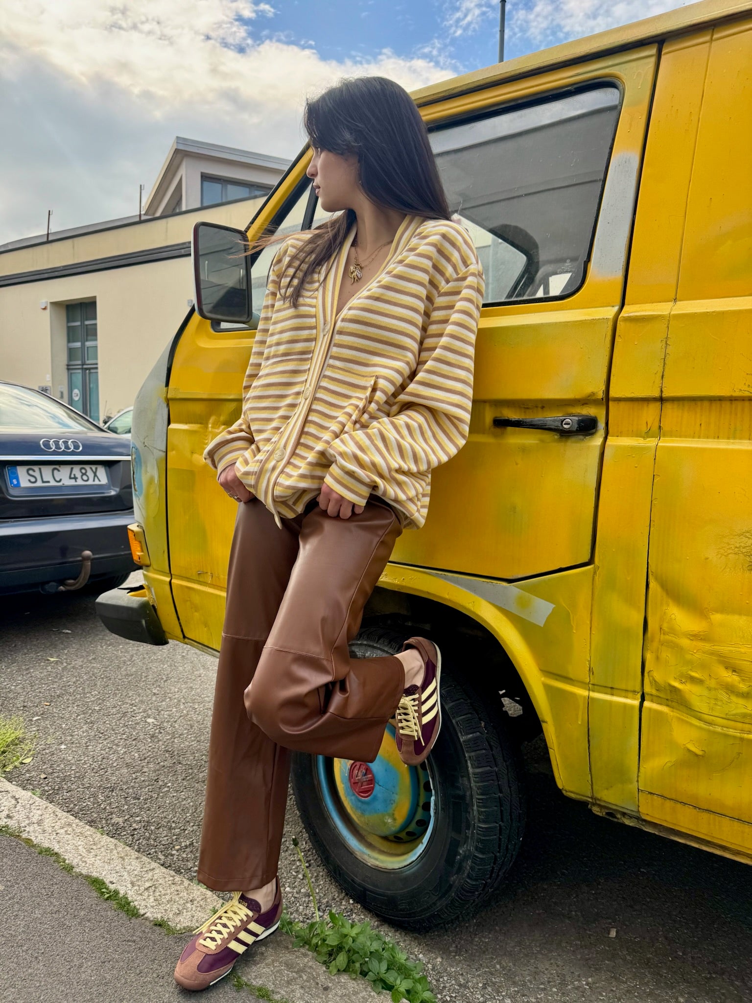 Felpa in cotone rigato modello cardigan, tasche sul davanti applicate. Vestibilità over.