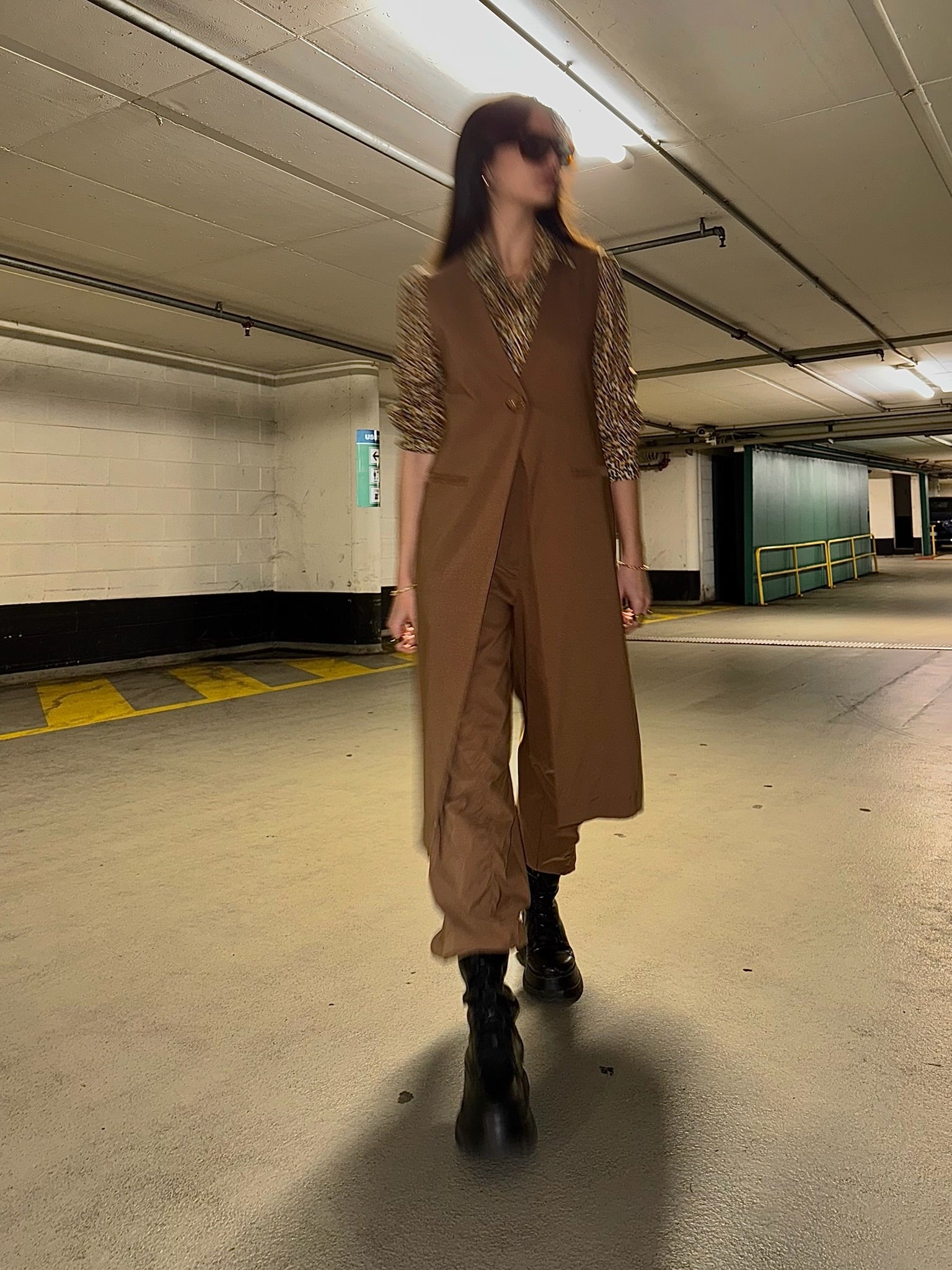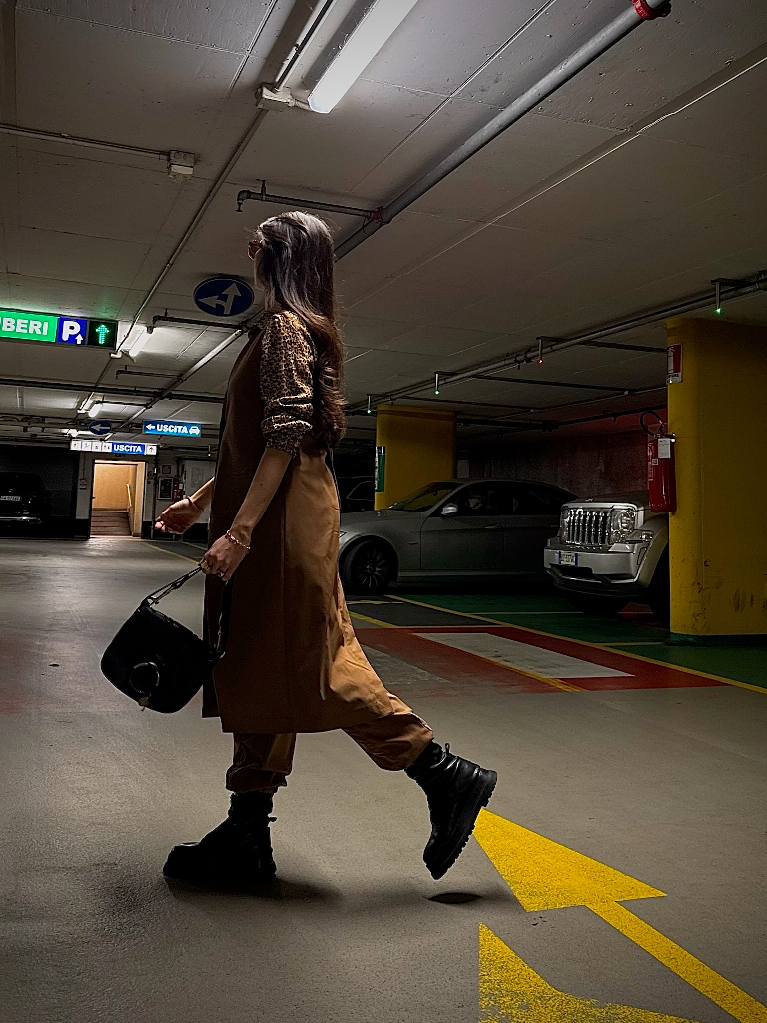 La modella è alta 162 cm e porta una taglia 38, in foto indossa taglia S